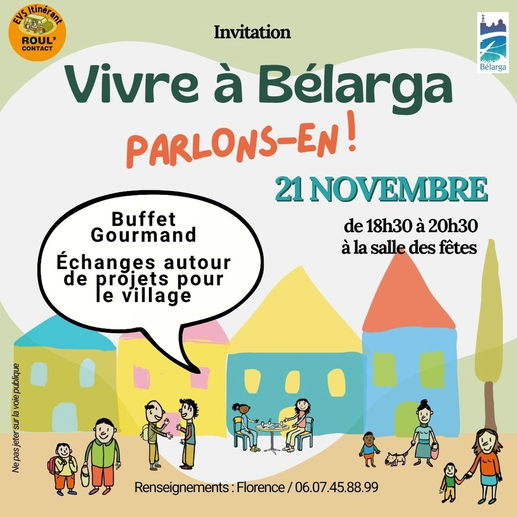 Dans ce cadre, nous invitons tous les habitants de Bélarga intéressé.e.s autour d'un buffet gourmand pour un échange convivial et constructif